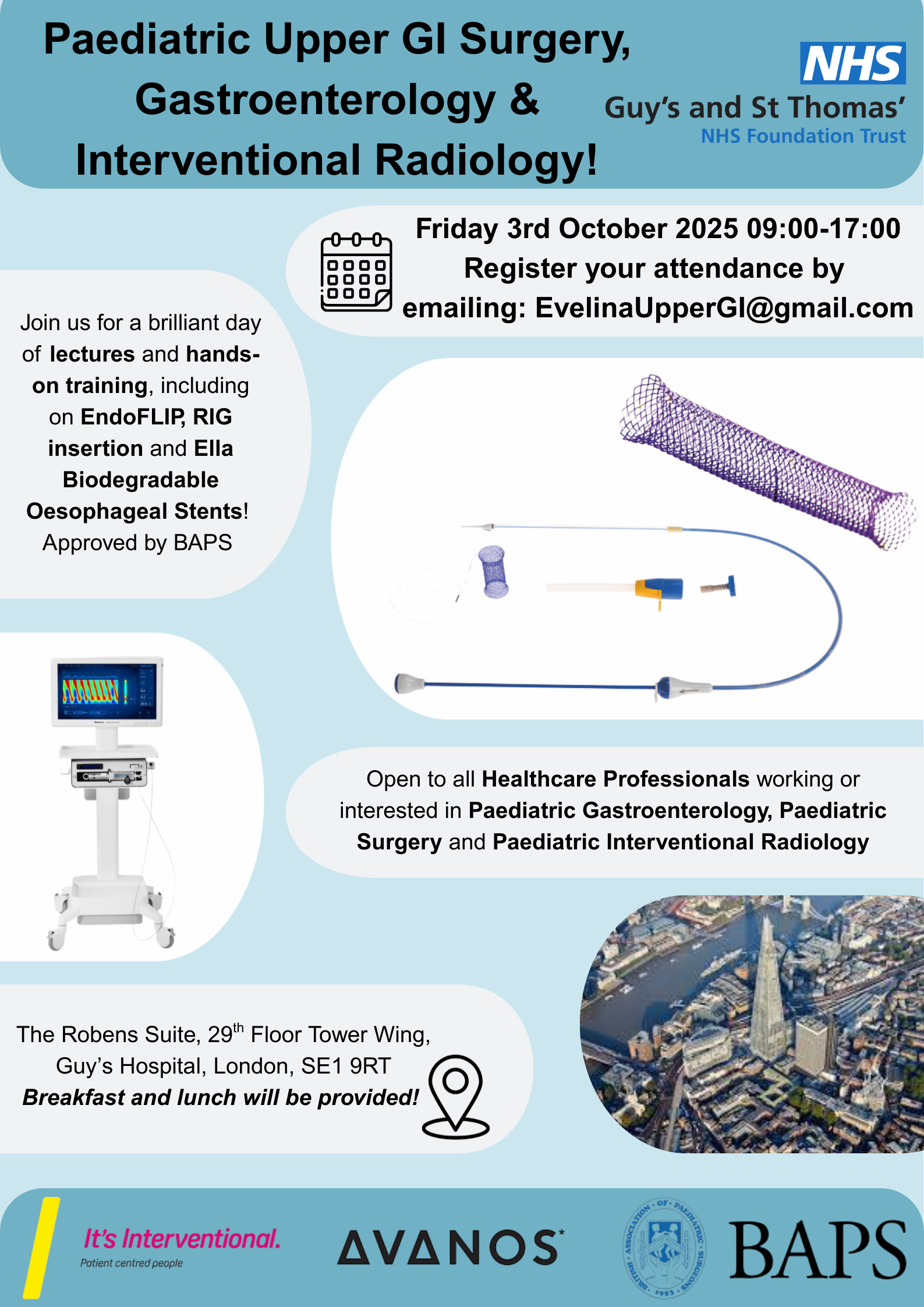 Open to all Healthcare Professionals working or interested in Paediatric Gastroenterology, Paediatric Surgery and Paediatric Interventional Radiology.