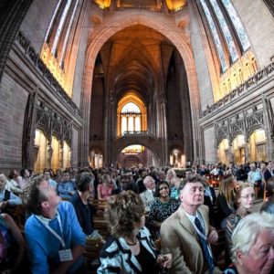 The beautifully lit anglican cathedral which formed the back drop to the BAPS Liverpool 2018 Welcome reception